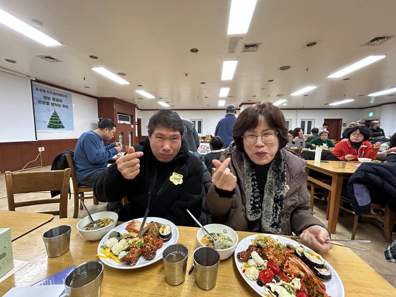 1부 행사 이후에는 회원들이 손수 준비한 정성 가득한 식사와 함께 덕담 나누기, 선물 나눔의 따뜻한 시간이 이어졌습니다. 이날 두분이 회원가입을 해주셨습니다. 행사 준비와 뒷정리, 참석과 후원을 해 주신 모든 분들께 깊이 감사드립니다.
