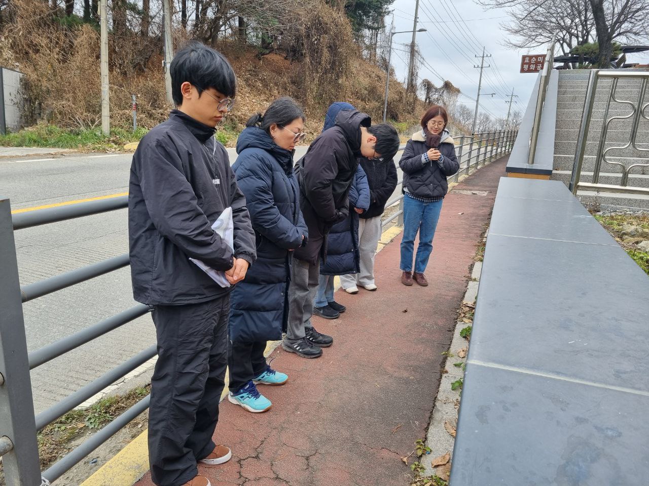11월 29일(토), 평통사 청년회원들이 2025 청년평화아카데미 일환으로 효순미선 평화공원 탐방을 다녀왔습니다. 참가자들은 토요일 주말 아침 충정로 사무실에 모여 자기소개 시간을 갖고, 청년회원의 발표로 효순미선 사건 개요를 듣는 시간을 가졌습니다.