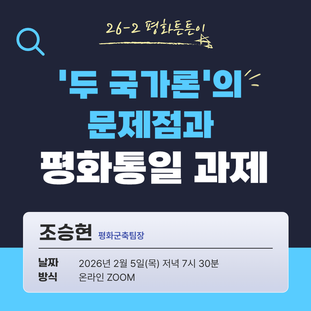 남북 정부와 언론 등에서 두국가론이 제기되는 배경과 그 문제점을 살펴보고 자주와 평화실현을 위한 평화통일의 절박성을 살펴봤습니다. 특히 확장억제와 동맹의 속박을 끊어내지 못한 채 분단과 대결이 깊어지는 한 현 국제정세속에서 평화공존도 자주도 더욱 멀어질 수밖에 없다는 점을 확인하고 평통사의 자주평화통일반핵군축 노선을 더욱 확고히 지키고 실현해 나갈 과제를 살펴봤습니다.