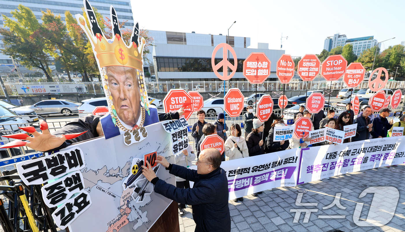이날 기자회견에서는 미국의 한국에 대한 국방비 증액 강요도 규탄했습니다.