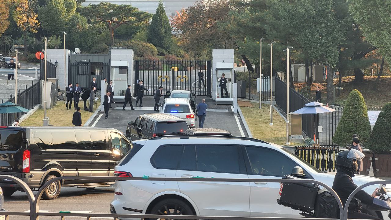 미 헤그세스 국방장관이 탄 차량 행렬이 대통령실 정문을 통과하는 모습 (사진 출처: 평통사)