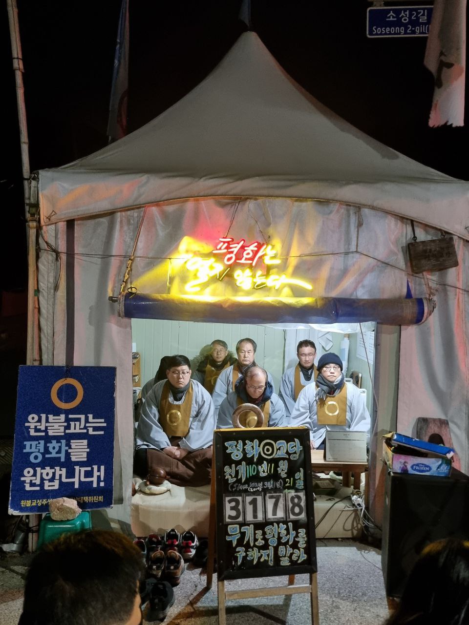 원익선 교무는 “한반도가 평화의 DMZ 세계평화의 중심지, 평화의 성지가 되는 날까지 함께 할 것”이라고 연대자들에게 감사 인사를 전했습니다. 참석자들은 다함께 민중의 노래를 부르며 집회를 마무리했습니다. 많은 이들의 투쟁으로 진밭평화교당을 지켜냈습니다.