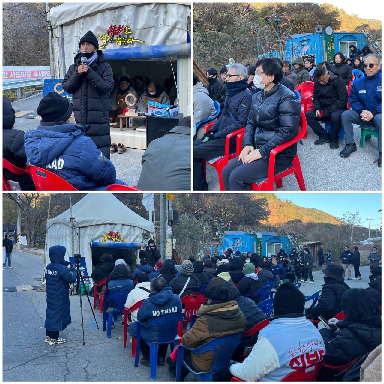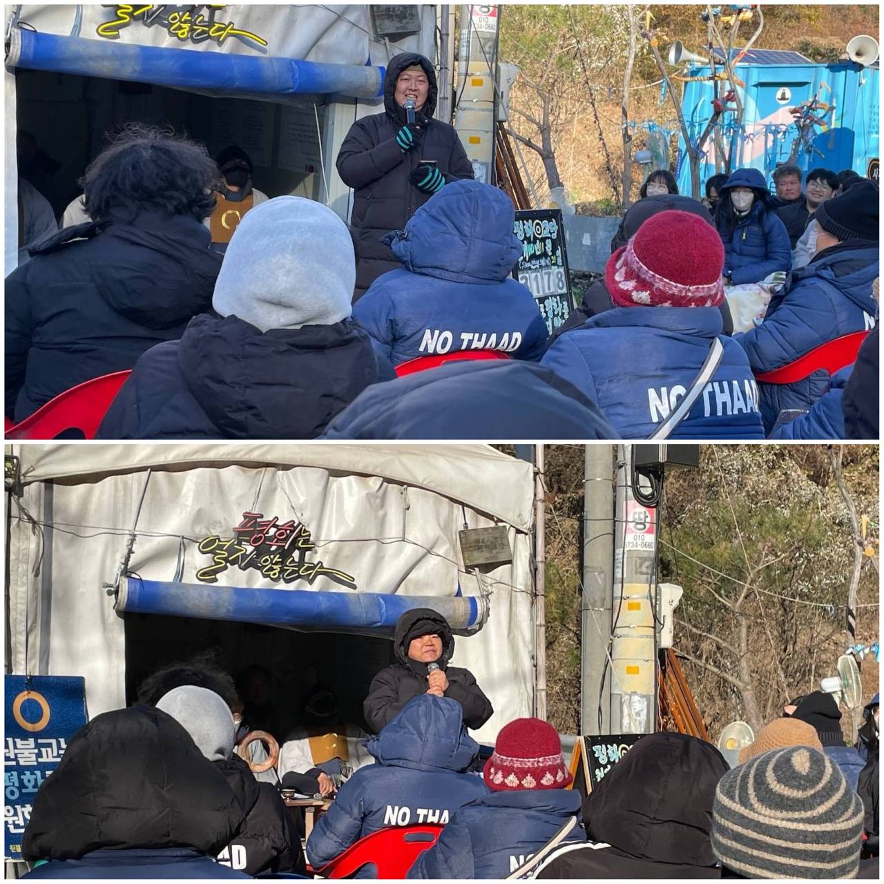 이종희 소성리 사드철회 성주 주민 대책위원장은 “사드가 우리 안보와는 전혀 무관한 미국 패권을 위한 무기다. 우리 안보를 위한 무기로 사람들을 속였지만 이제는 미국 패권을 위한 무기라는 진실을 모두 알고 있다. 연대위해 달려오는 연대자들이 있고 한 줄기 희망이 있다면 끝까지 싸울 것! ”이라고 결의를 밝힙니다. “행정대집행 해야할 장소는 평화를 지키는 진밭교당이 아니라 사드 기지이다!“라고 힘주어 외칩니다.