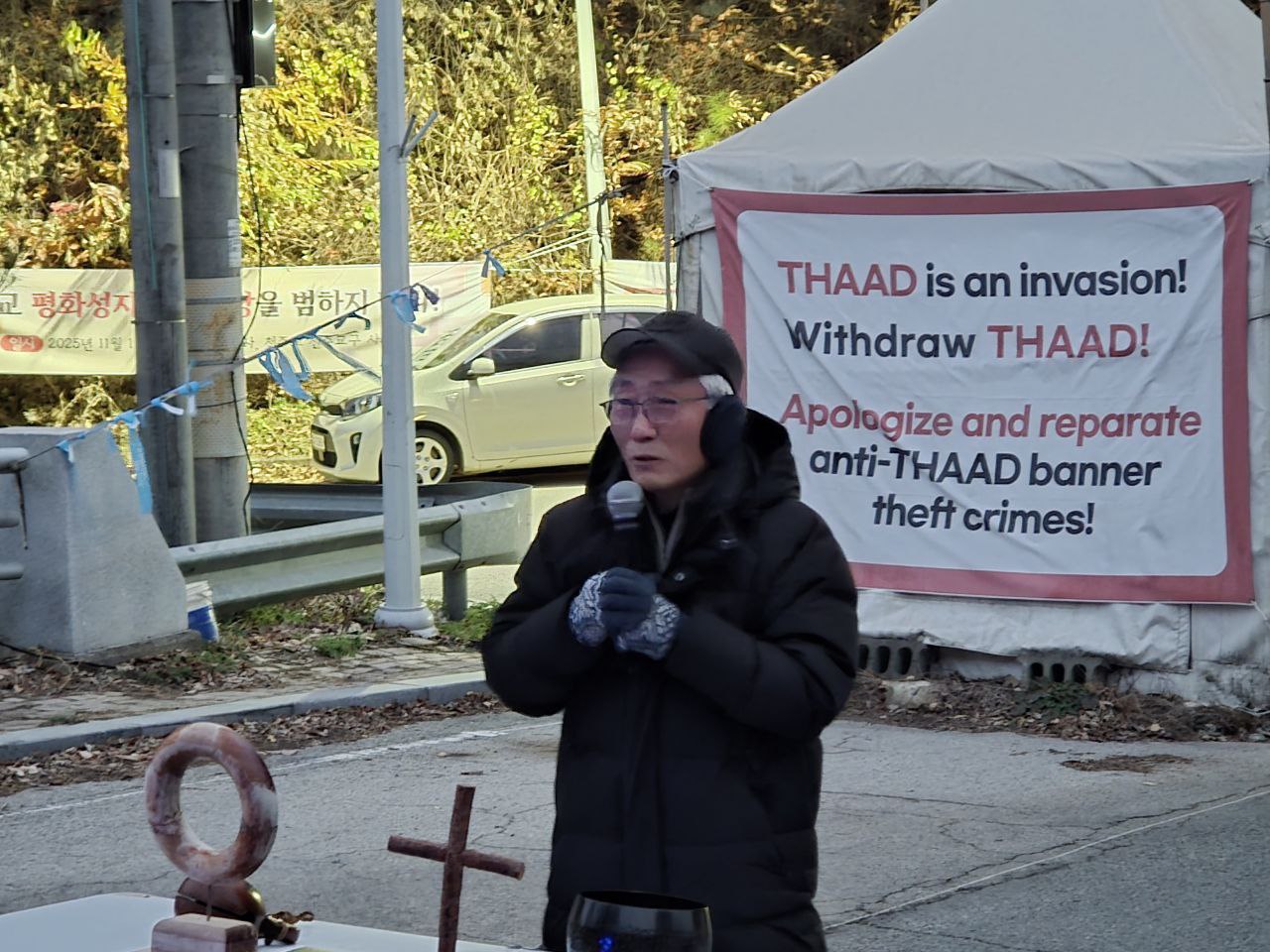오전 7시 10분: 다음으로 사드배치반대 김천시민대책위원회 박석민 고문이 발언을 이어갑니다. 박석민 위원은 내일(3일)이 윤석열 정권의 불법계엄, 내란 기도 1년이라며 "우리가 지금까지 싸워온 세력은 빙산의 일각이고 여전히 우리가 맞서 싸워야 할 세력이 너무나 많다. 시대가 우리에게 부여한 사드 철거의 과업을 결코 포기하지 말자"고 말합니다.