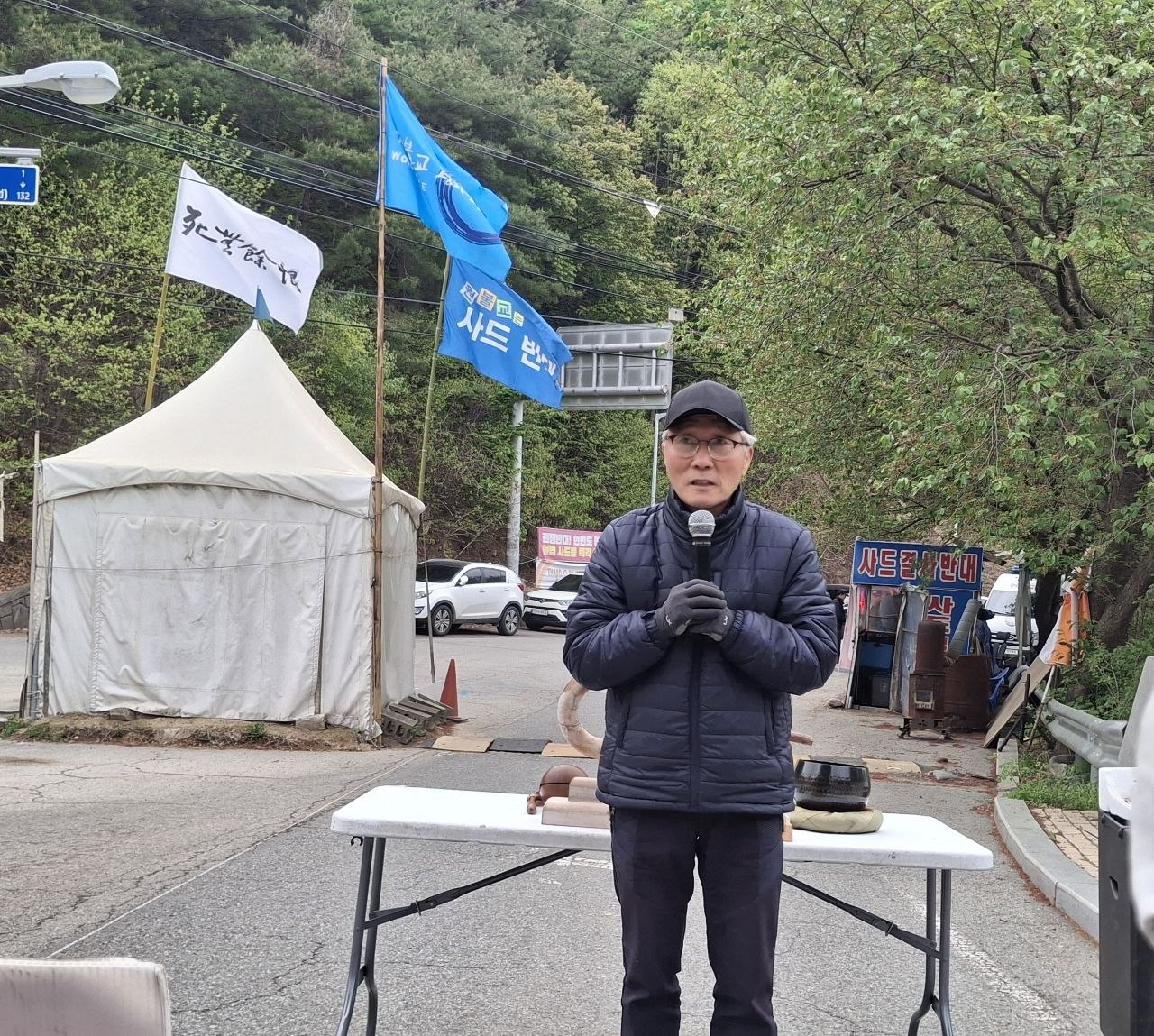오전 6시 50분: 첫번째 순서로 사드배치반대 김천시민대책위원회 박석민 고문이 발언합니다.