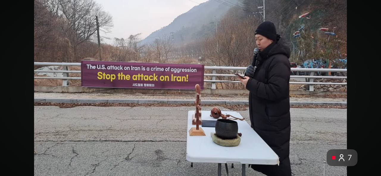 오전 7시 10분: 평통사 이우성 활동가는 미국과 이스라엘에 대한 이란 침략과 관련해 유엔헌장 33조에서 다루고 있는 분쟁의 평화적 해결을 소개했습니다. 어떠한 경우라도, 분쟁을 평화적으로 해결해야하며 이것이 확전을 막고, 민간인의 피해를 줄이는 방안이라는 점을 원칙적으로 견지해야 함을 강조 했습니다.