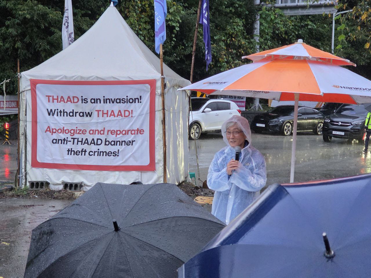 오전 7시: 사드반대 김천시민대책위원회 박석민 위원은 "'동맹 현대화'라는 것은 주한미군의 전략적 유연성을 전 세계로 확장하고, 특히 양안분쟁에 개입하는 것을 이야기하는 것인데 이렇게 되면 대중국 전쟁에 한국군이 동원되는 것도 예정된 수순이다. 그런데 이런 것을 수용하겠다는 것이 어제 외교장관의 발언이었다. 적어도 한반도에서 전쟁을 막아야 하는 것은 국가의 책임이다. 그리고 국가가 그 역할을 하지 못할 때 나서는 것이 우리 역할이다. 이런 엄중한 현실도 우리의 힘으로 극복해나갈 수 있다는 자신감을 가지고 투쟁하자."고 발언합니다.