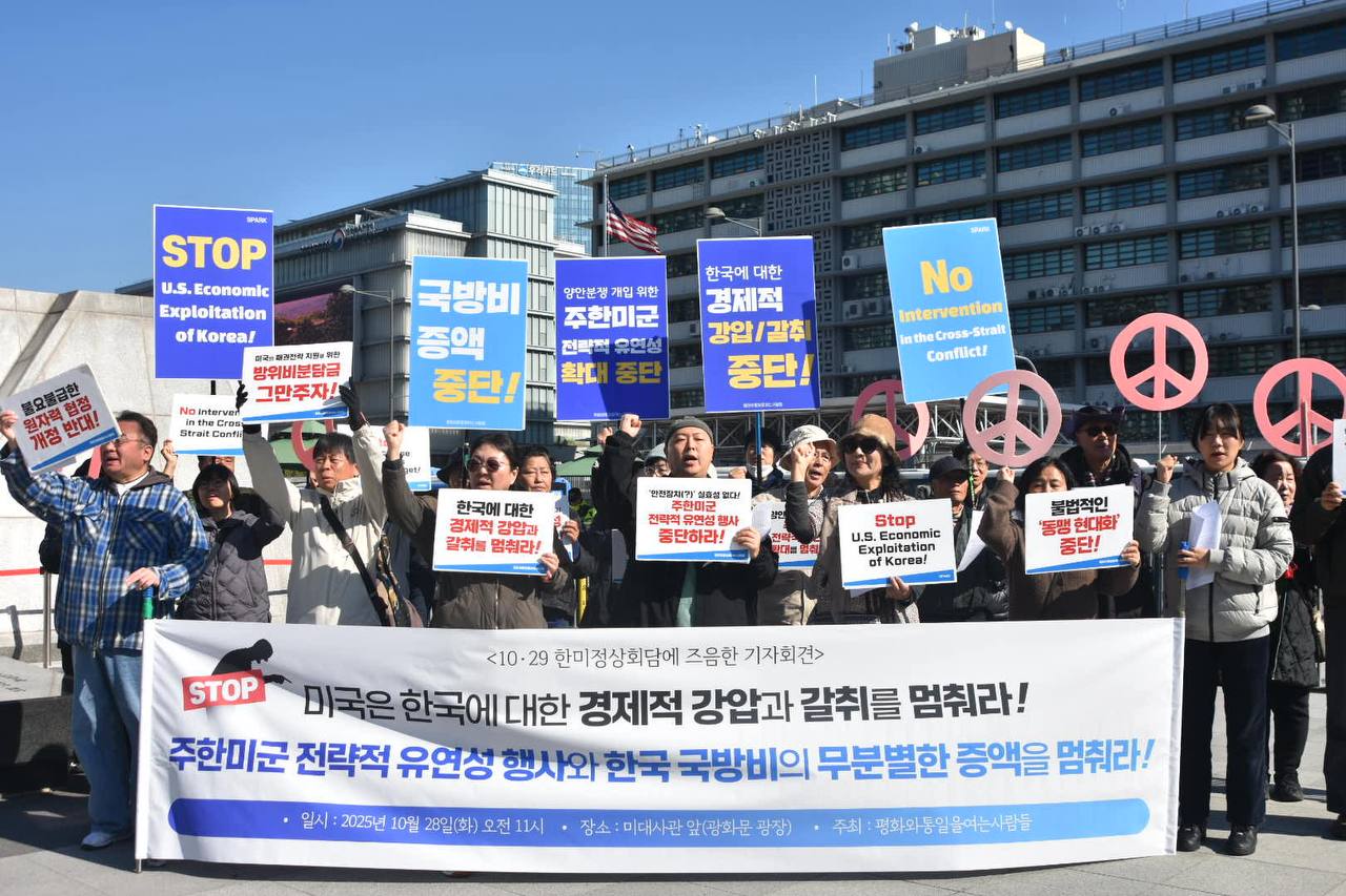 이에 평화와통일을여는사람들은 트럼프 행정부에게 한국에 대한 경제적 강압과 갈취를 멈추고 주한미군 전략적 유연성 행사와 한국 국방비의 무분별한 증액 중단을 촉구하는 기자회견을 개최하였습니다.