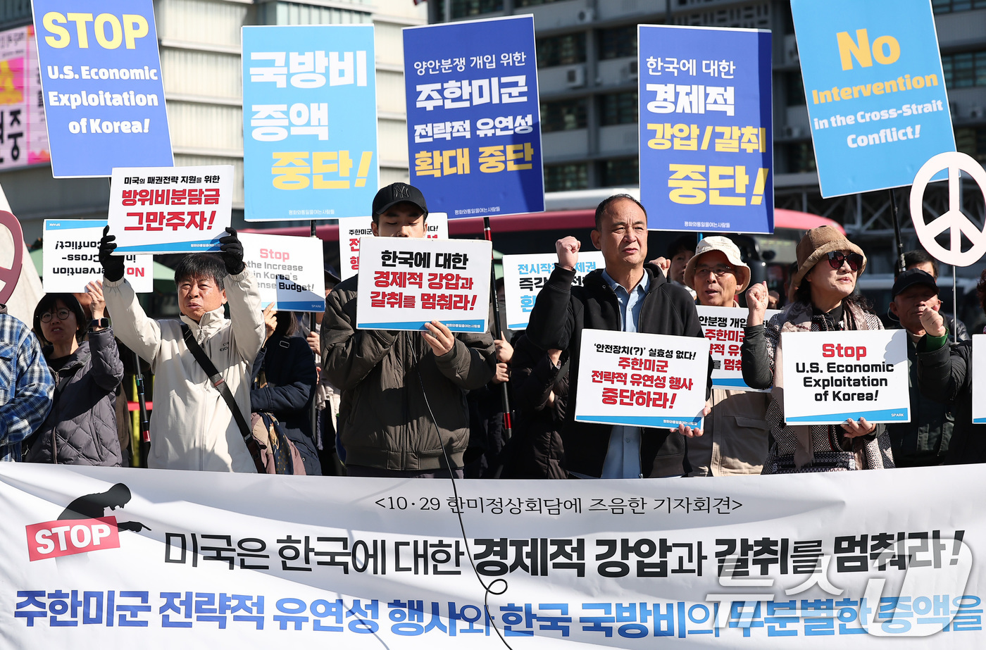 평통사 회원들이 불법적인 '동맹 현대화' 중단과 국방비 증액 반대를 촉구했다 (출처: 뉴스1)