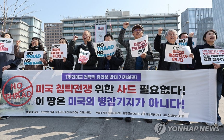한편 12일(수) 11시 30분 미 대사관 앞에서는 사드발사대 중동 반출에 즈음하여 사드 발사대 재반입 저지, 사드레이더 철거 등 불법적인사드철거를 촉구하는 기자회견이 개최되었습니다.