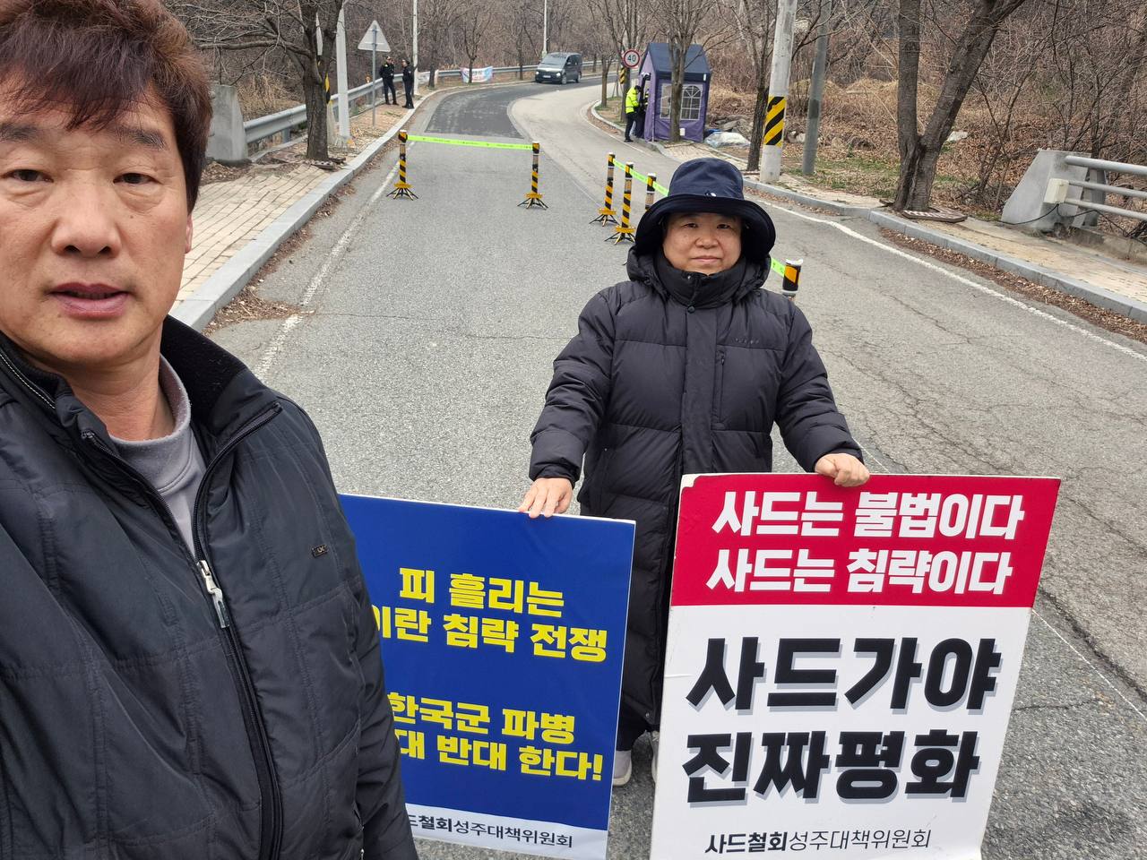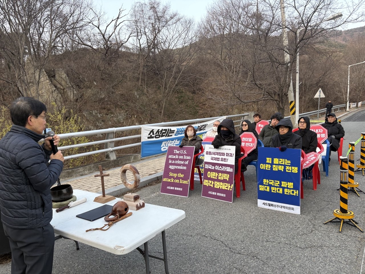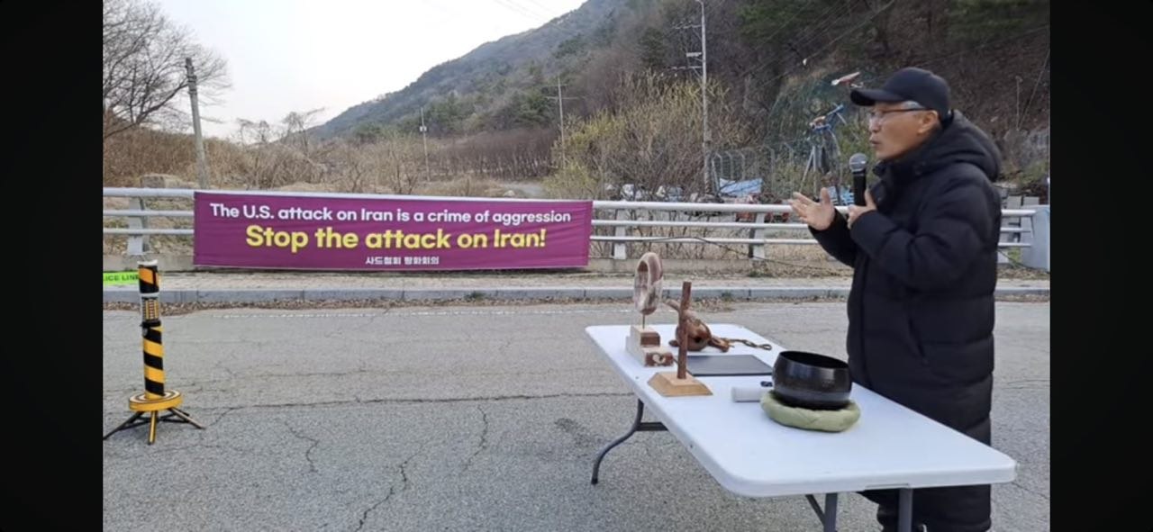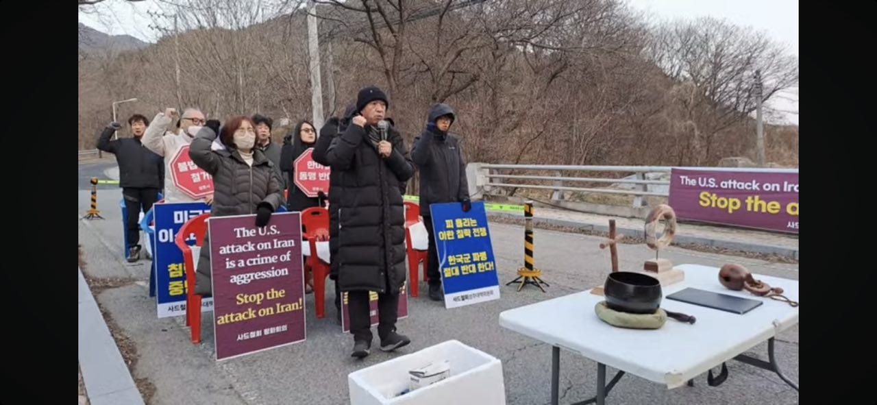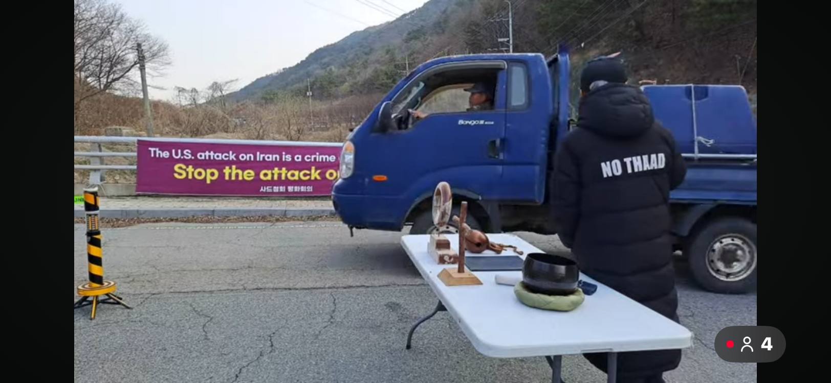 오전 6시 50분: 다음으로 대전충청평통사 유영재 상임운영위원의 발언이 이어집니다. 유영재 운영위원은 'UAE와 요르단에 배치된 사드 레이더가 이란의 공격으로 파손되었는데도, 성주기지 사드 미사일은 빼가면서 레이더는 그대로 남겨 두는 것은 중통 전쟁통에도 성주 사드 레이더가 이 곳에 필요하다는 의미이다. 즉 중국과 북의 미사일을 상시 감시해야 한다는 것이다. 이는 성주 사드 포대의 핵심은 레이더라는 우리의 주장이 사실이었음을 입증하는 것이다. 이란이 세계 최강의 미국의 십자포화를 맞으면서도 미국을 궁지로 모는 것은 결사항전의 자세로 싸우기 때문이다. 우리도 장기항전의 자세로 사드가 뽑힐 때까지 투쟁하자.'고 힘찬 결의를 모아냈습니다.