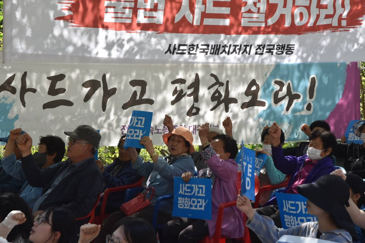 불법 사드 배치 10년! 침략전쟁 중단! 불법사드 철거! 이란파병 반대!