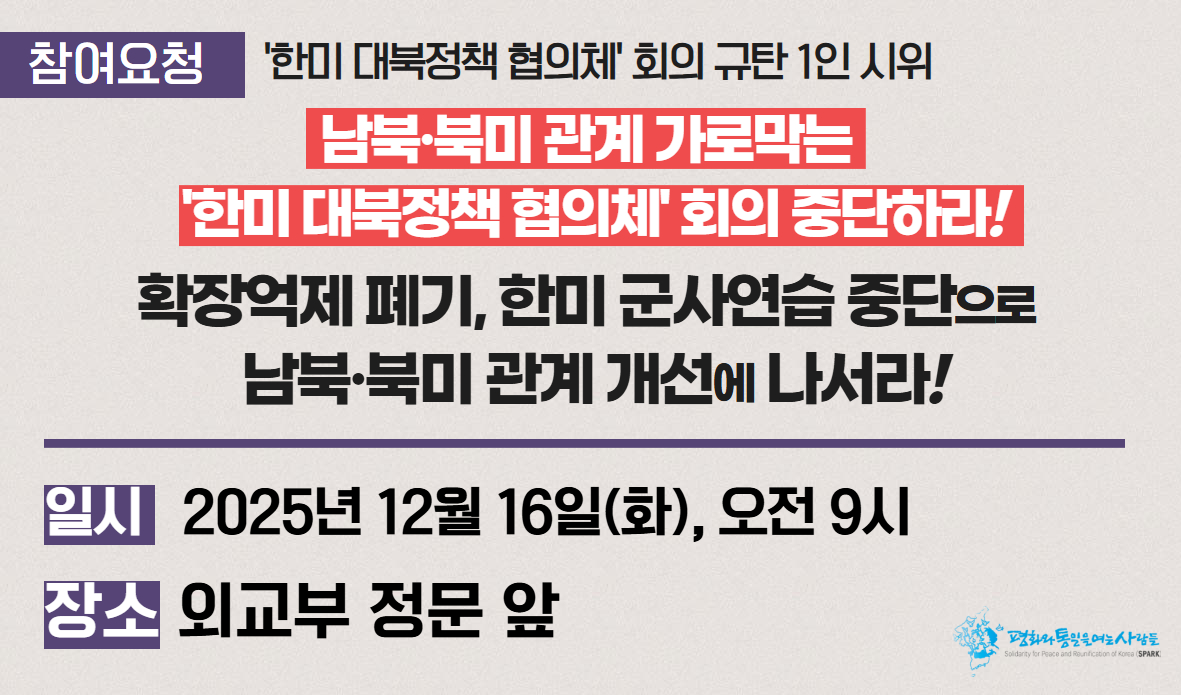 [참여요청] 12/16 '한미 대북정책 협의체' 회의 규탄 1인시위