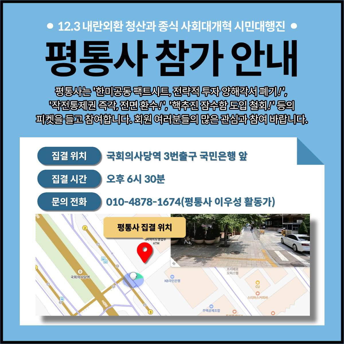[참여요청] 12.3 내란외환 청산과 종식! 사회대개혁! 시민대행진
