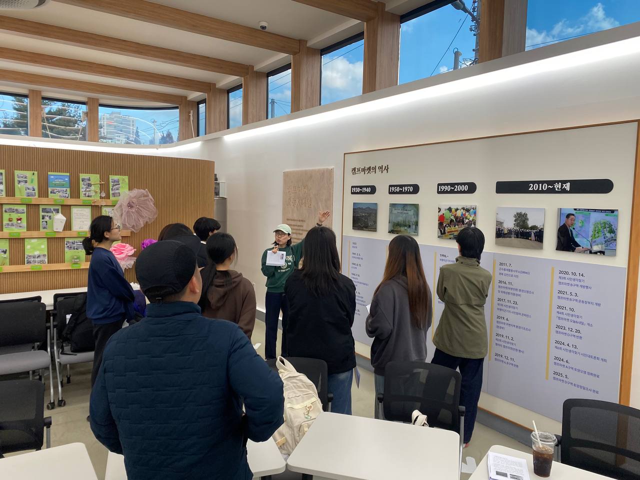참가자들이 부평미군기지의 역사에 대한 해설을 경청하며 듣고 있다