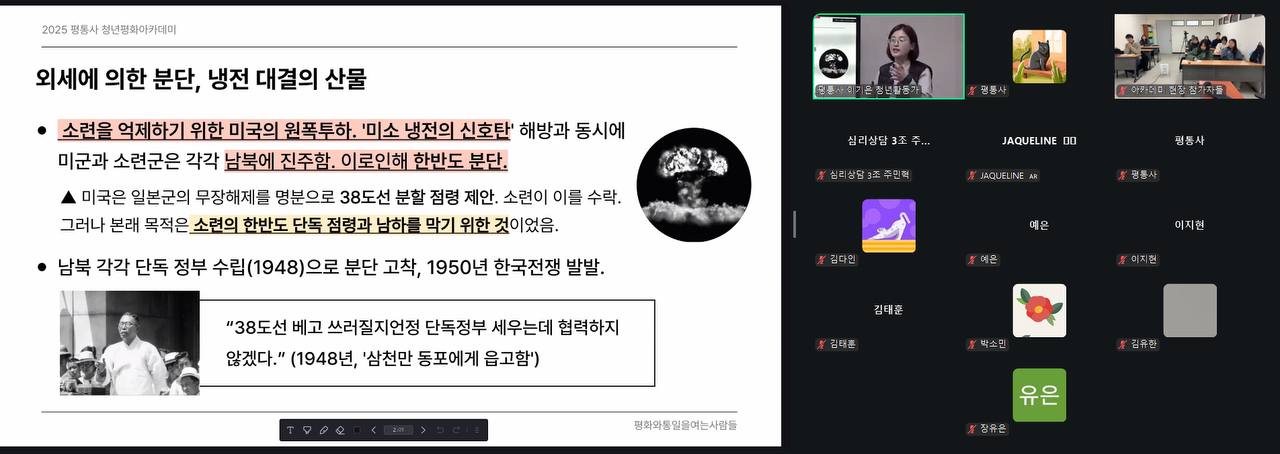 [2025 청년평화아카데미_대표강좌] 1/13 분단 81년, 자주, 평화 실현의 길을 비추는 한반도 평화통일!