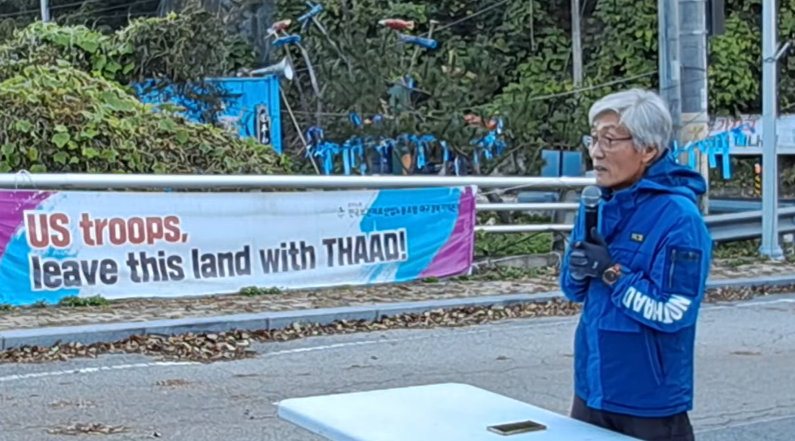 김천시민대책위원회 박석민 위원은 "한반도에 살고 있는 우리에게는 전쟁과 분단을 끝내야 한다는 시대적 사명이 있다. 우리가 지난 10년간 사드 투쟁을 해온 것도 그런 시대적 사명을 위한 것이다. 사드를 철거하고 이를 계기로 평화를 열어나가자"고 발언합니다.