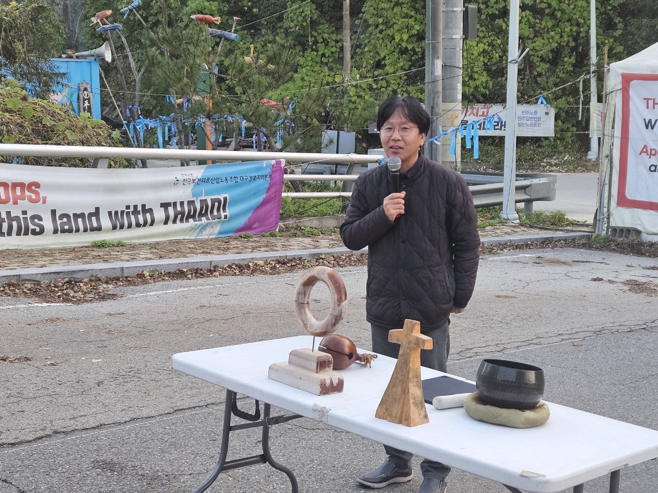 오전 7시 10분: 다음으로 부산평통사 손기종 대표가 경주 APEC 회의를 계기로 진행한 한미정상회담 대응 평화행동에 다녀온 소식을 공유합니다.