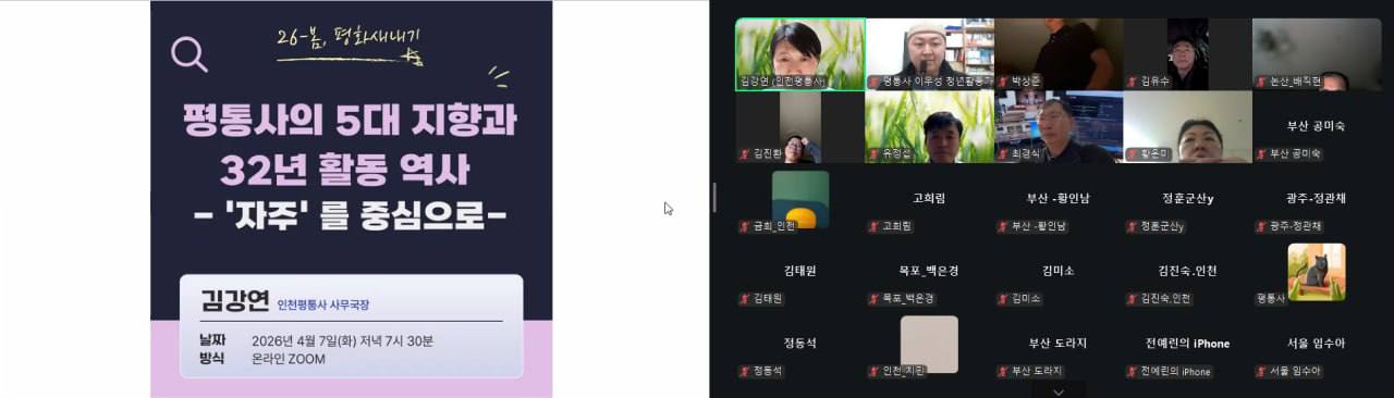 26년 봄 평화새내기 교육에서는 분단과 전쟁, 동맹이라는 자주권이 박탈되어 온 역사를 살펴보고 자주가 평화 통일 반핵 군축 실현의 출발이고, 동맹이 자주를 가장 침해한다는 점을 확인했습니다.