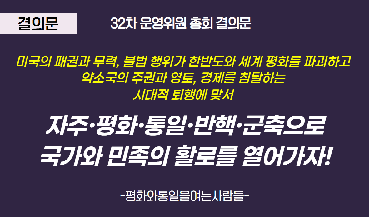 <평화와통일을여는사람들 제32차 운영위원 총회 결의문>