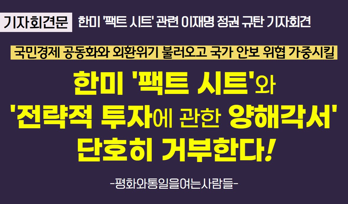 한미 '팩트 시트'와 '전략적 투자에 관한 양해각서' 단호히 거부한다!
