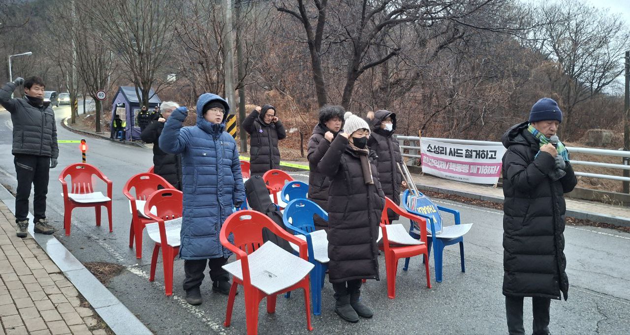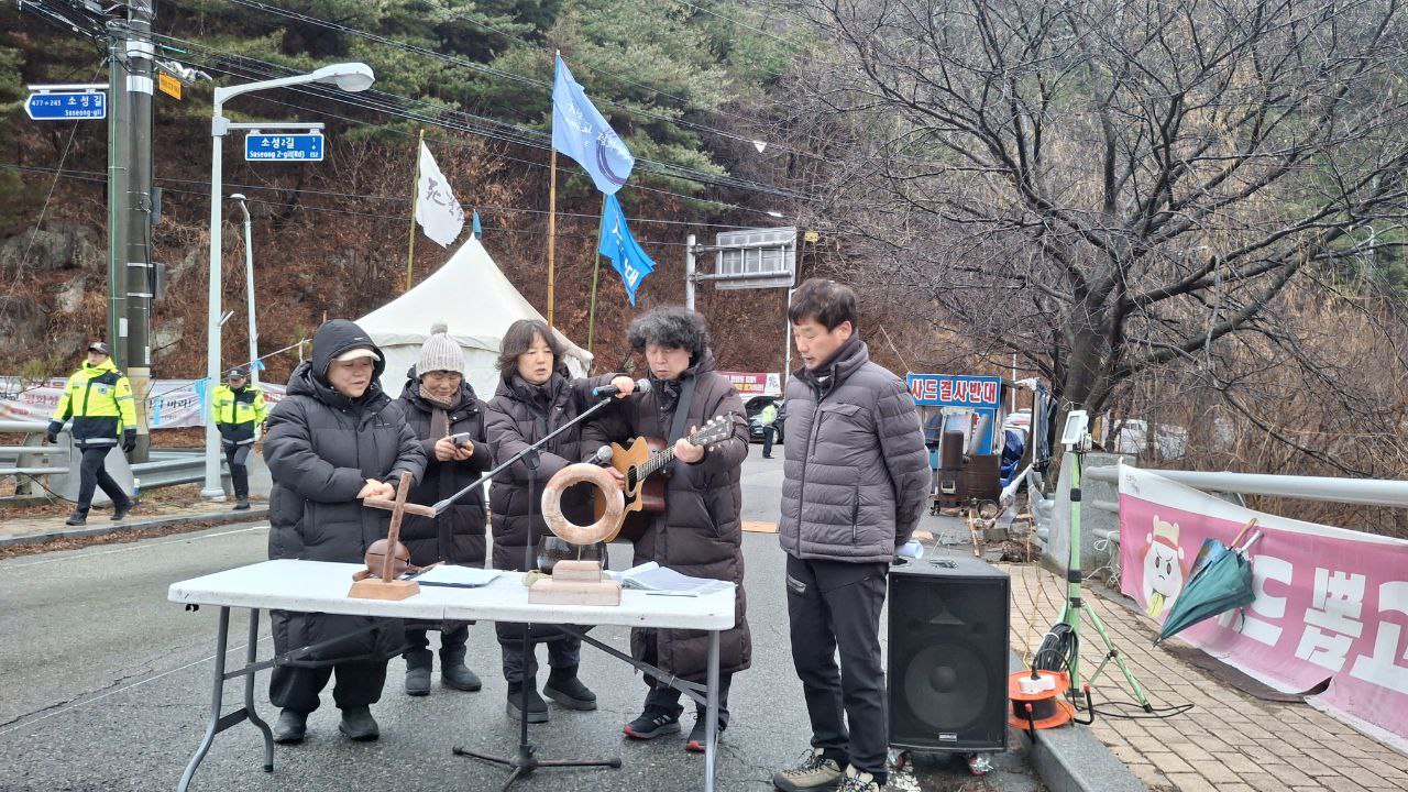 공사차량이 모두 진입한 후 참가자들은 이날 평화행동을 마칩니다.