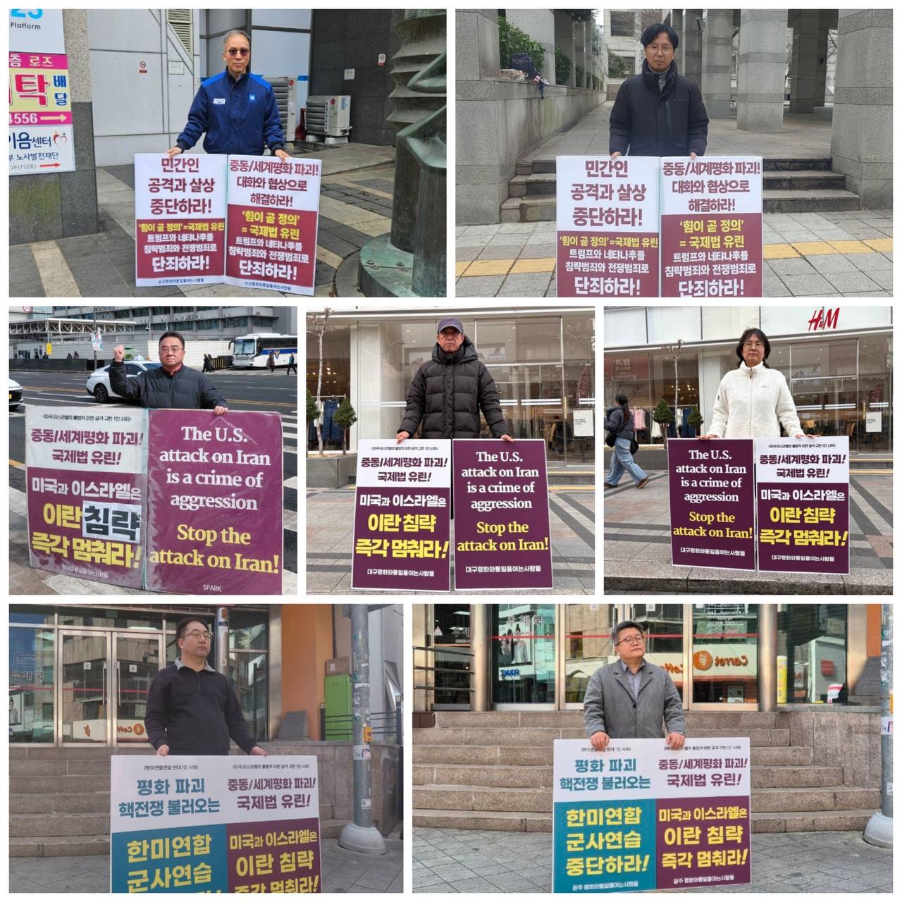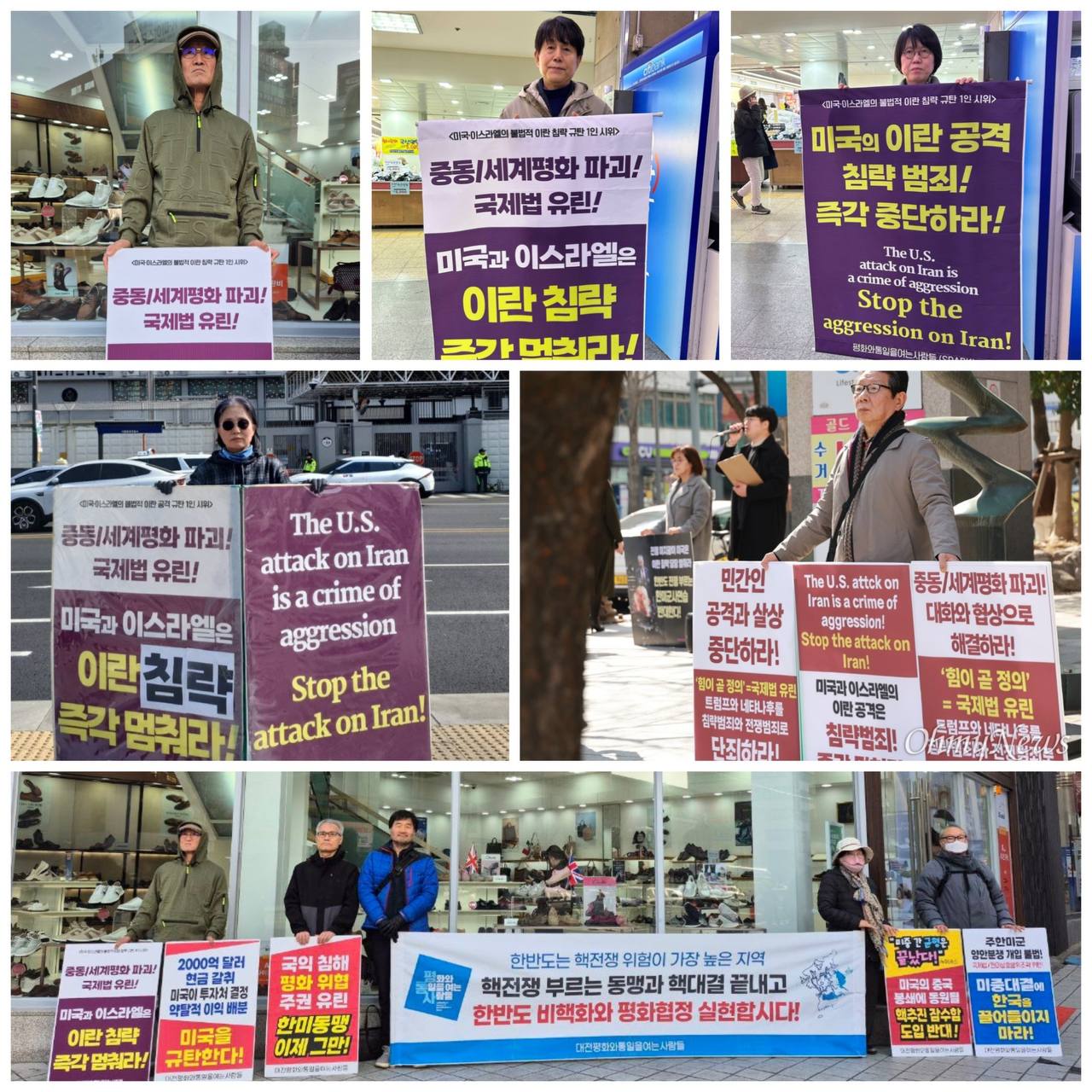 <미국·이스라엘의 불법적 이란 침략 규탄 1인 시위>