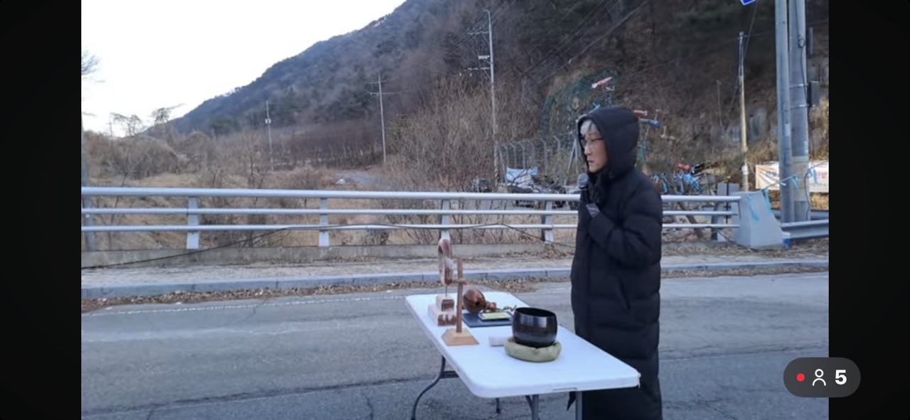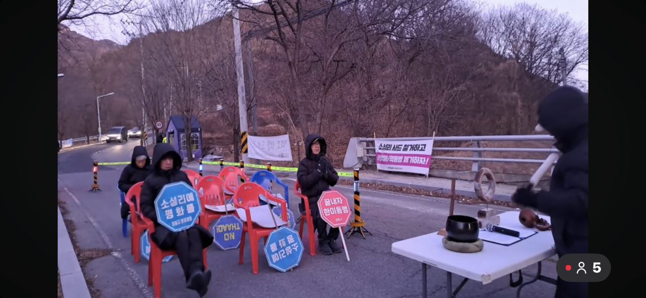 오전 6시 50분: 오늘도 진밭교에서 불법 사드 공사 중단과 사드 철거를 요구하는 1006번째 평화행동을 시작합니다. 오늘 평화행동에는 대구평통사 회원들이 함께 합니다. 첫순서로 원불교 평화법회를 진행합니다.