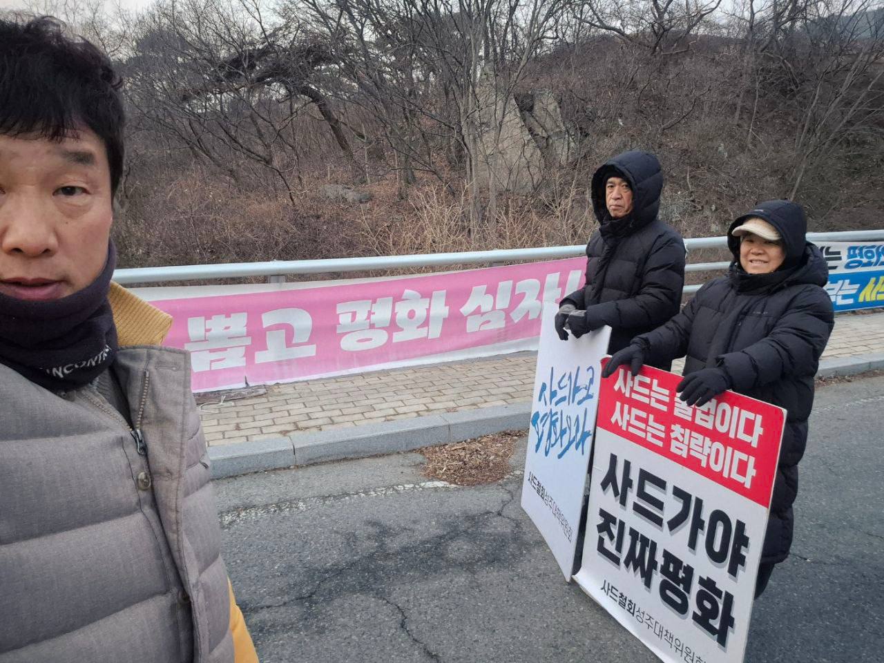 지난 금요일 아침평화행동에 나선 대구평통사 회원들