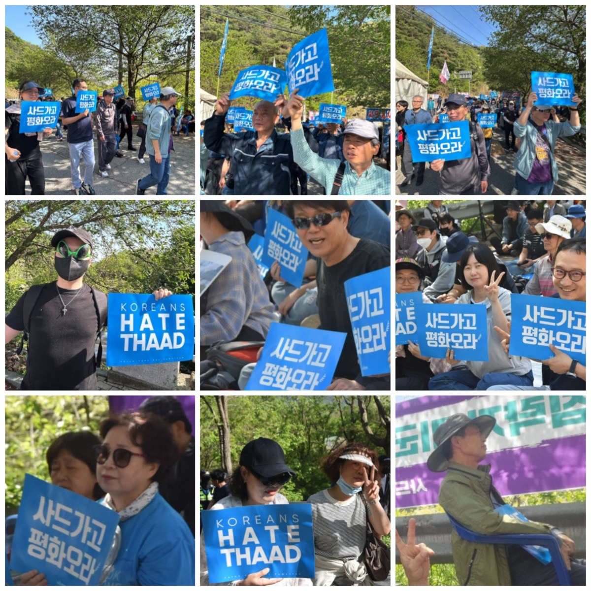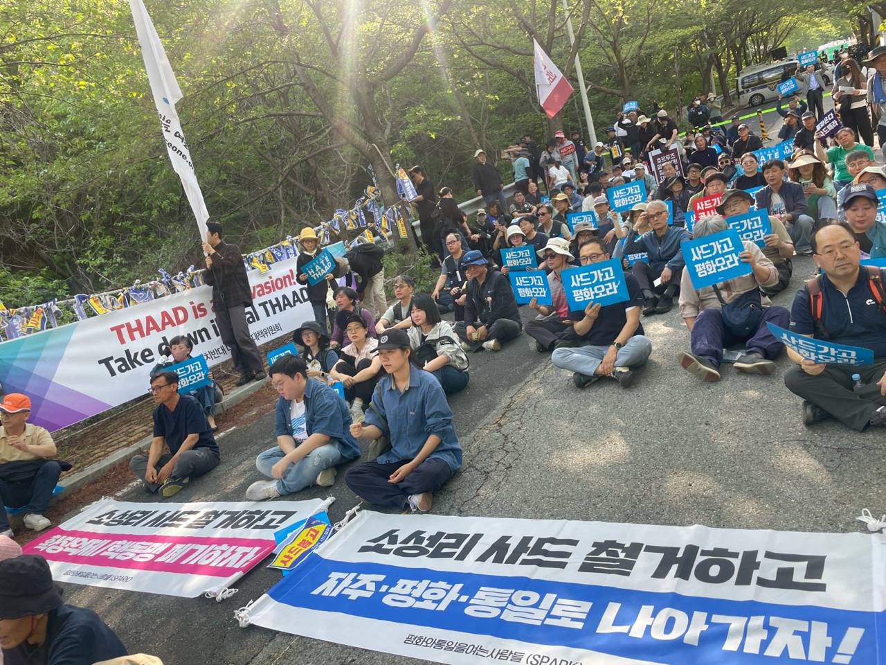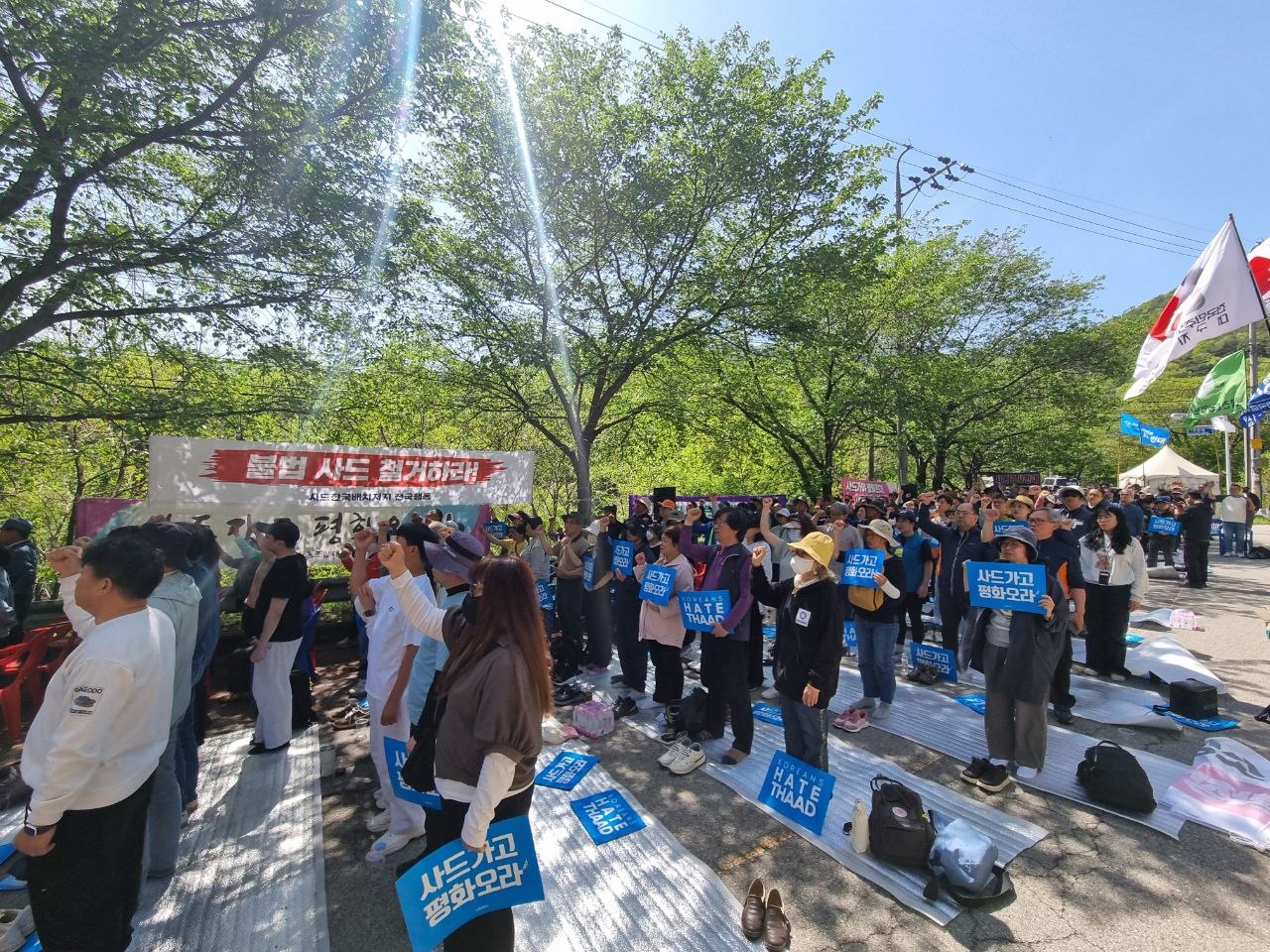 "불법 사드 배치 10년! 침략전쟁 중단! 불법사드 철거! 이란파병 반대!"