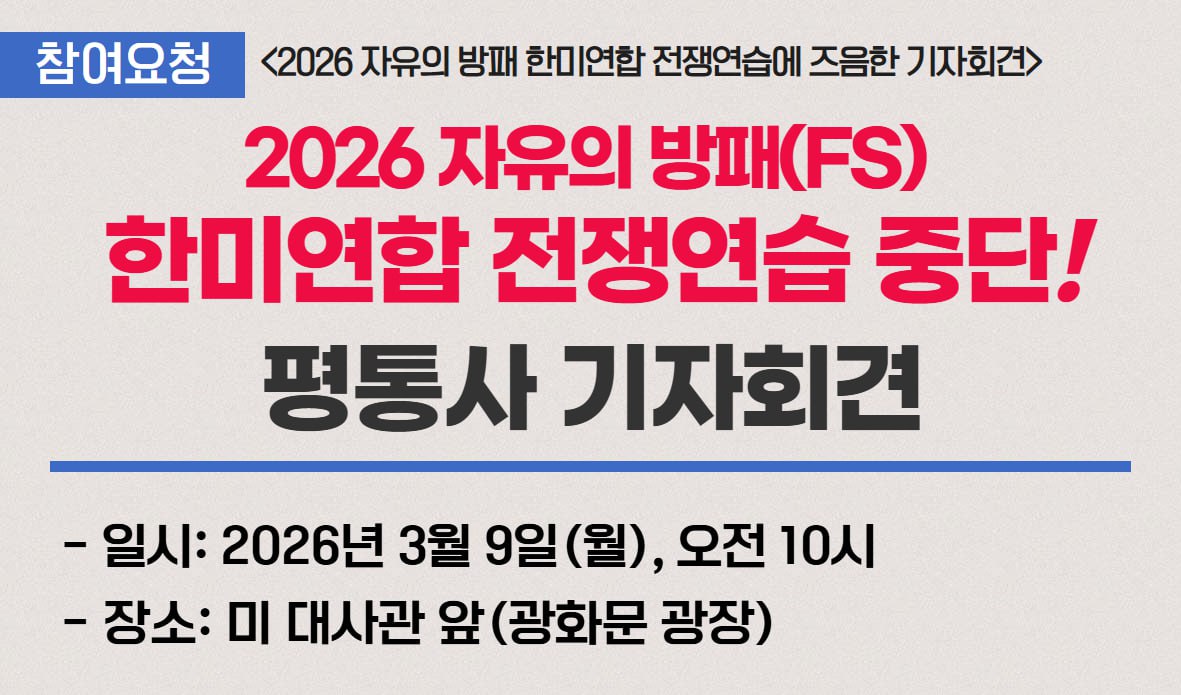 [참여요청] 2026 '자유의 방패(FS)' 한미연합 전쟁연습 중단 촉구 3/9 기자회견